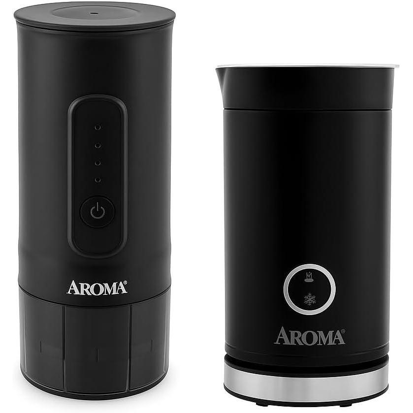 2-in-1 Coffee Bundle – Includes the Aroma Portable Mini Espresso Maker + Aroma 4-in-1 Hot & Cold Milk Frother for the ultimate café combo.